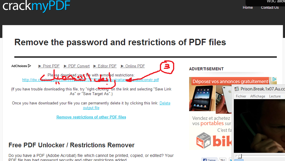 الحل سهل جدا هناك العديد من المواقع التي توفر لك فك الحماية مجانا فقط قم برفع الملف المرغوب الى أحد هده المواقع وسوف يقوم الموقع بتحميل الملف الغير محمي عند الانتهاء من عملية فك الحماية مباشرة.